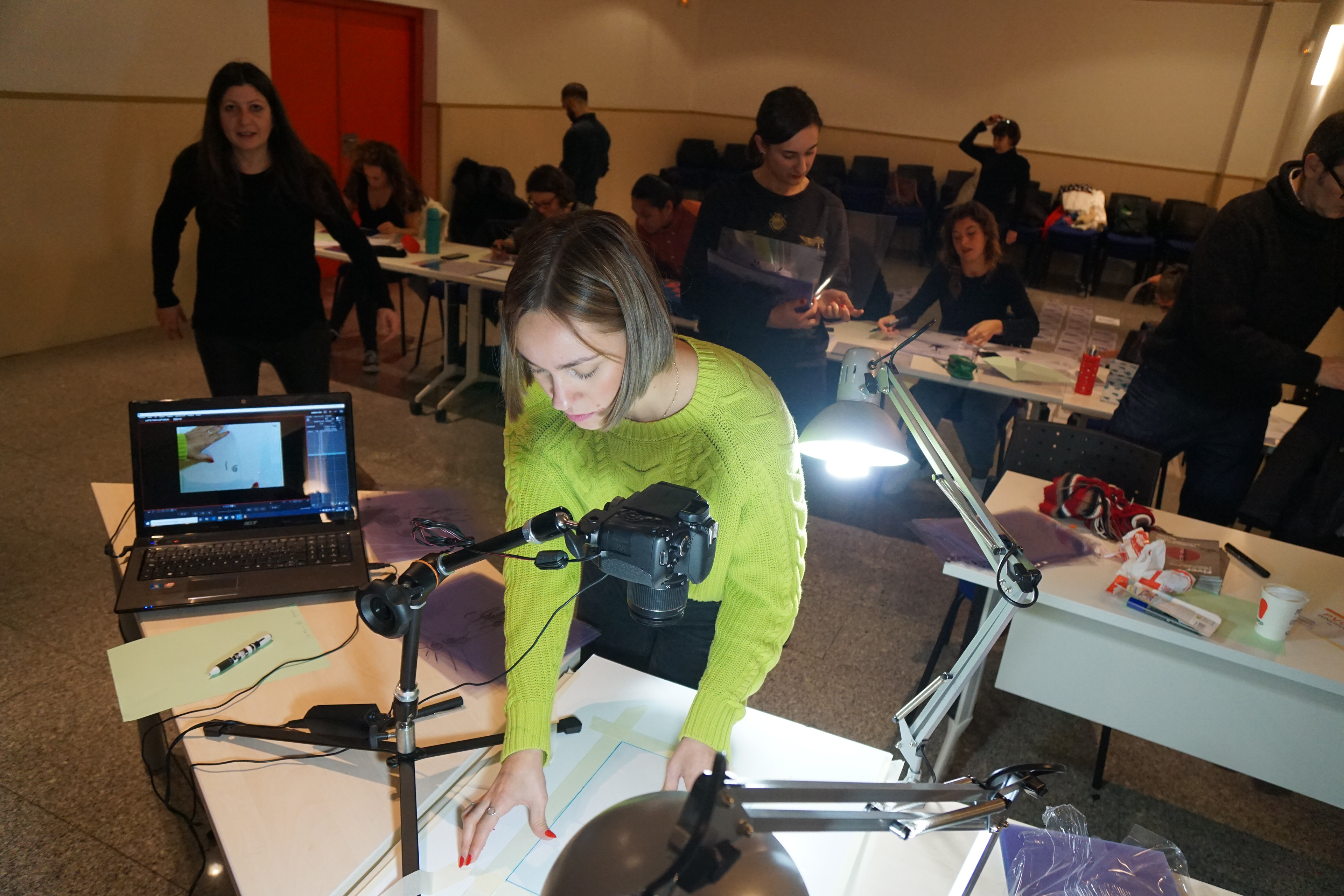 Finally, graphic elements, texts, or visual effects are added using various traditional animation techniques. Depending on the technical resources and time available, participants will intervene on the frames in an analog format, using markers on transparent acetates to understand the fundamental principles of animation processes and techniques.