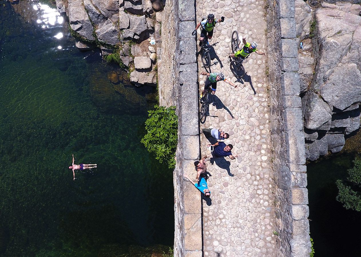 The contest was won and the campaign was carried out with little difficulty. The most complex part of the challenge turned out to be the fact of having to change the conventional narrative chip and think in zenith, in heights, rotation, up and down to compose in a kind of two-dimensional canvas without leaks or perspective … Thus, depending on the place in which we recorded, the frames worked better at more or less height. There was an exorbitant difference in height between the recording in such intimate and secluded places such as the Alange Spa or the Rooms Gorge where we could not fly much more than 10 meters, while in spaces such as the cruise on the International Tagus, the Orellana Beach or the Caozo’s Waterfall, we climbed up to 60 meters high and the image worked much better. So to cover my back, all possible heights were recorded at different speeds and positions of the character and then rethought the order of the shots in post-production and editing. At that point, a balance was sought between the original idea and certain leaps that betrayed the spirit of the continuous movement but allowed to show the greatness of certain places. The ideal situation would have been the same as always: to be able to locate a few days before with a drone … In parallel, photographs were taken to develop the graphic campaign for the press, the internet and urban furniture. To play the role of the main character, more than an actor, we needed a willing helper who basically didn’t mind spending three days in the water, swimming and diving. It sounds good but I assure you that being in the Garganta de los Infiernos from 10 in the morning for more than two hours is hard. The choice of Ángel Muela, an adventurous photographer who behaved like a true champion, was a success. The truth is that he is not recognized because basically it is reduced to an ant in the image but his blonde hair works great. Everything was done in just three weeks: Creativity and concept, locations and pre-production, filming and post-production. I hope you like the result.