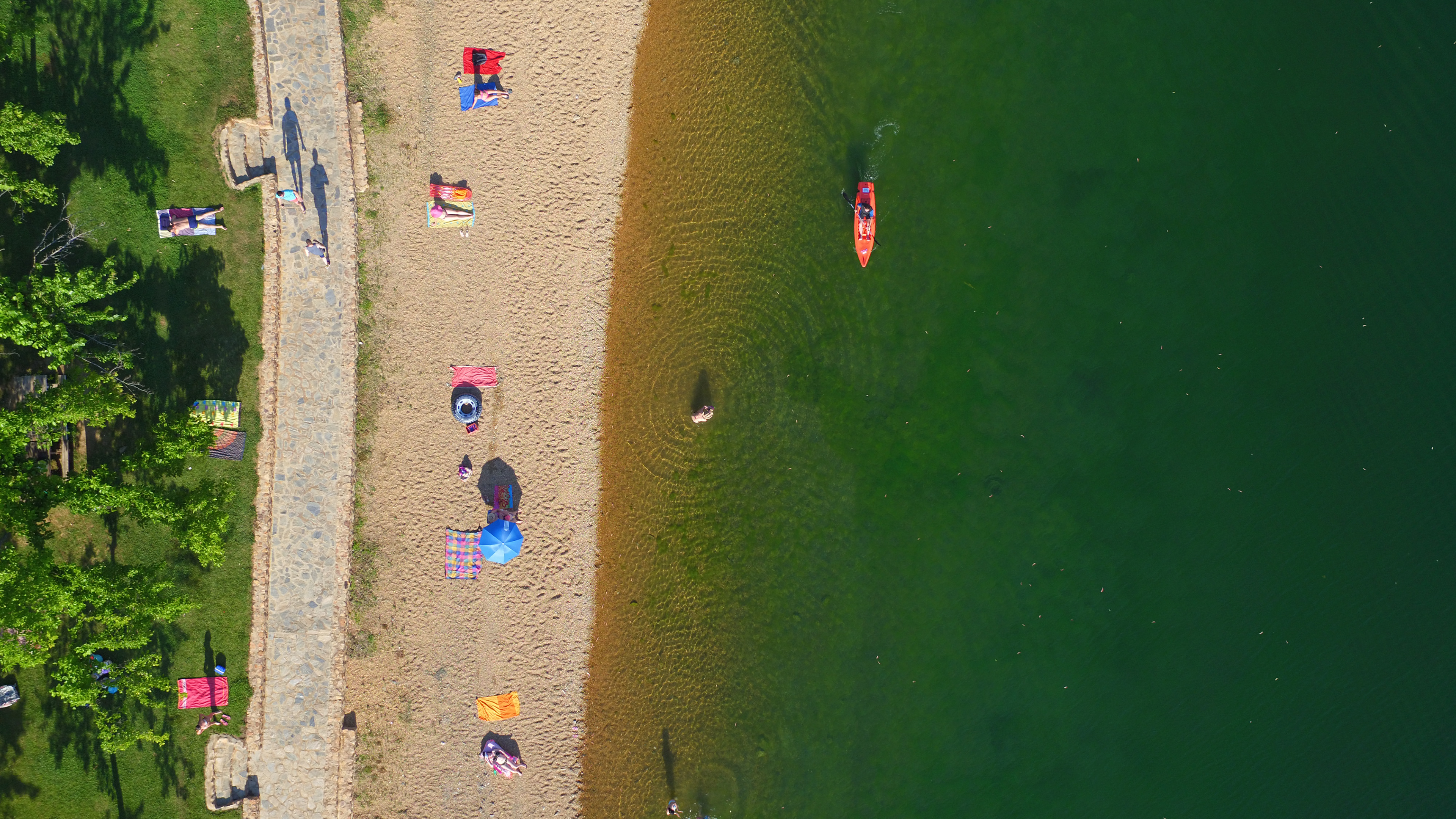 El concurso se ganó y la campaña se realizó no con pocas dificultades. Lo más complejo del desafío resultó ser el hecho de tener que cambiar el chip narrativo convencional y pensar en cenital, en alturas, rotación, arriba y abajo para componer en una especie de lienzo bidimensional sin fugas ni perspectiva… De este modo, dependiendo del lugar en el que grabábamos, los encuadres funcionaban mejor a más o menos altura. Existía una diferencia desorbitada de altura entre la grabación en lugares tan íntimos y recogidos como el Balneario de Alange o la Garganta de Cuartos en los que no podíamos volar mucho más de 10 metros, mientras que en espacios como el crucero por el Tajo Internacional, la Playa de Orellana o la Cascada del Caozo, subíamos hasta 60 metros de altura y funcionaba mucho mejor la imagen. Así que para cubrirme las espaldas, se grabaron todas las alturas posibles a diferentes velocidades y posiciones del personaje para luego replantear el orden de los planos en postproducción y montaje. Llegados a ese punto, se buscó un equilibrio entre la idea original y ciertos saltos que traicionaban el espíritu del movimiento contínuo pero permitían mostrar la grandeza de ciertos lugares. La situación ideal habría sido la de siempre: poder localizar unos días antes con un dron… En paralelo se realizaron fotografías para desarrollar la campaña gráfica para prensa, internet y mobiliarios urbanos. Para representar el papel del personaje principal, más que un actor, necesitábamos un figurante bien dispuesto al que básicamente no le importara pasarse tres días metido en el agua, nadando y buceando. Suena bien pero os aseguro que estar metido en la Garganta de los Infiernos desde las 10 de la mañana durantes más de dos horas es duro. Fue un acierto la elección de Ángel Muela, un fotógrafo aventurero que se portó como un auténtico campeón. La verdad es que no se le reconoce porque básicamente se reduce a una hormiguita en la imagen pero su rubia cabellera funciona estupendamente. Todo se realizó en apenas tres semanas: Creatividad y concepto, localizaciones y preproducción, rodaje y postproducción. Espero que os guste el resultado.