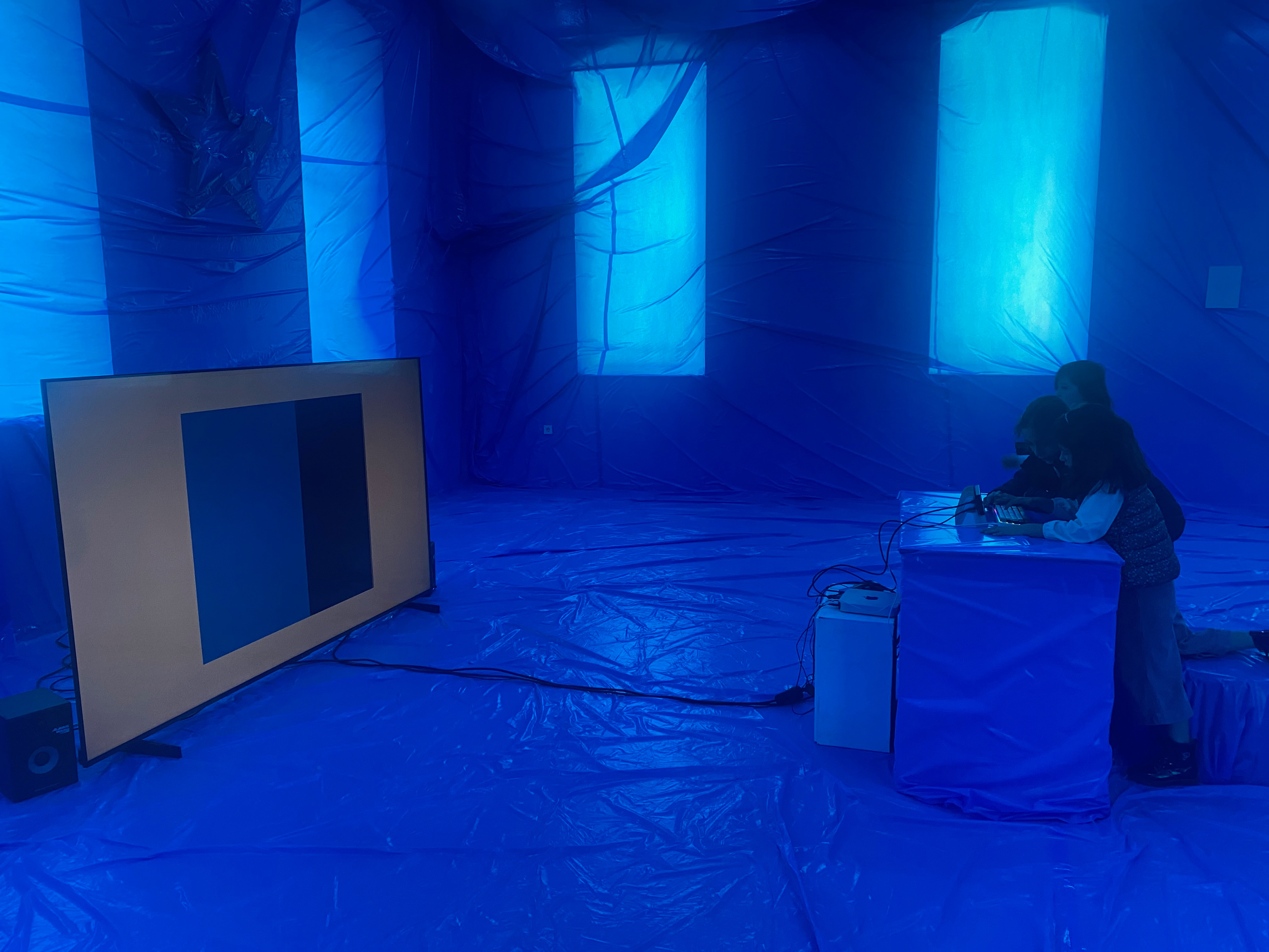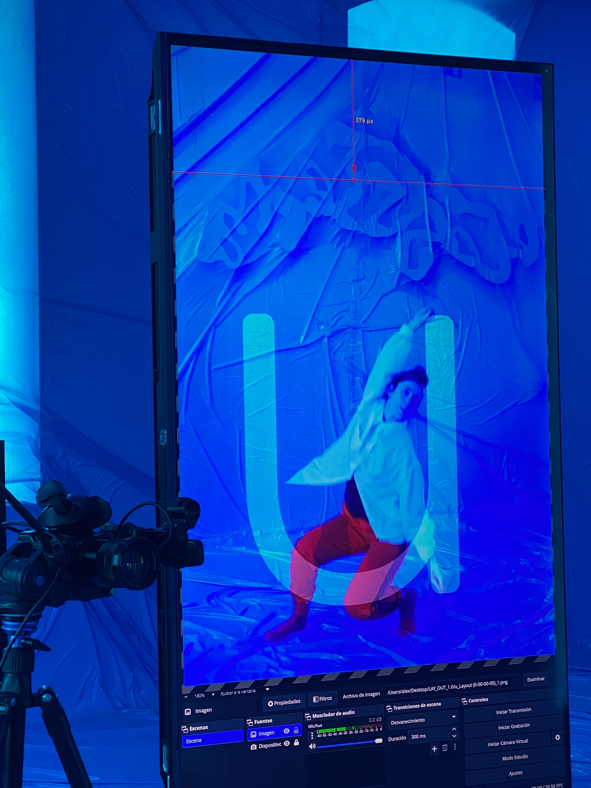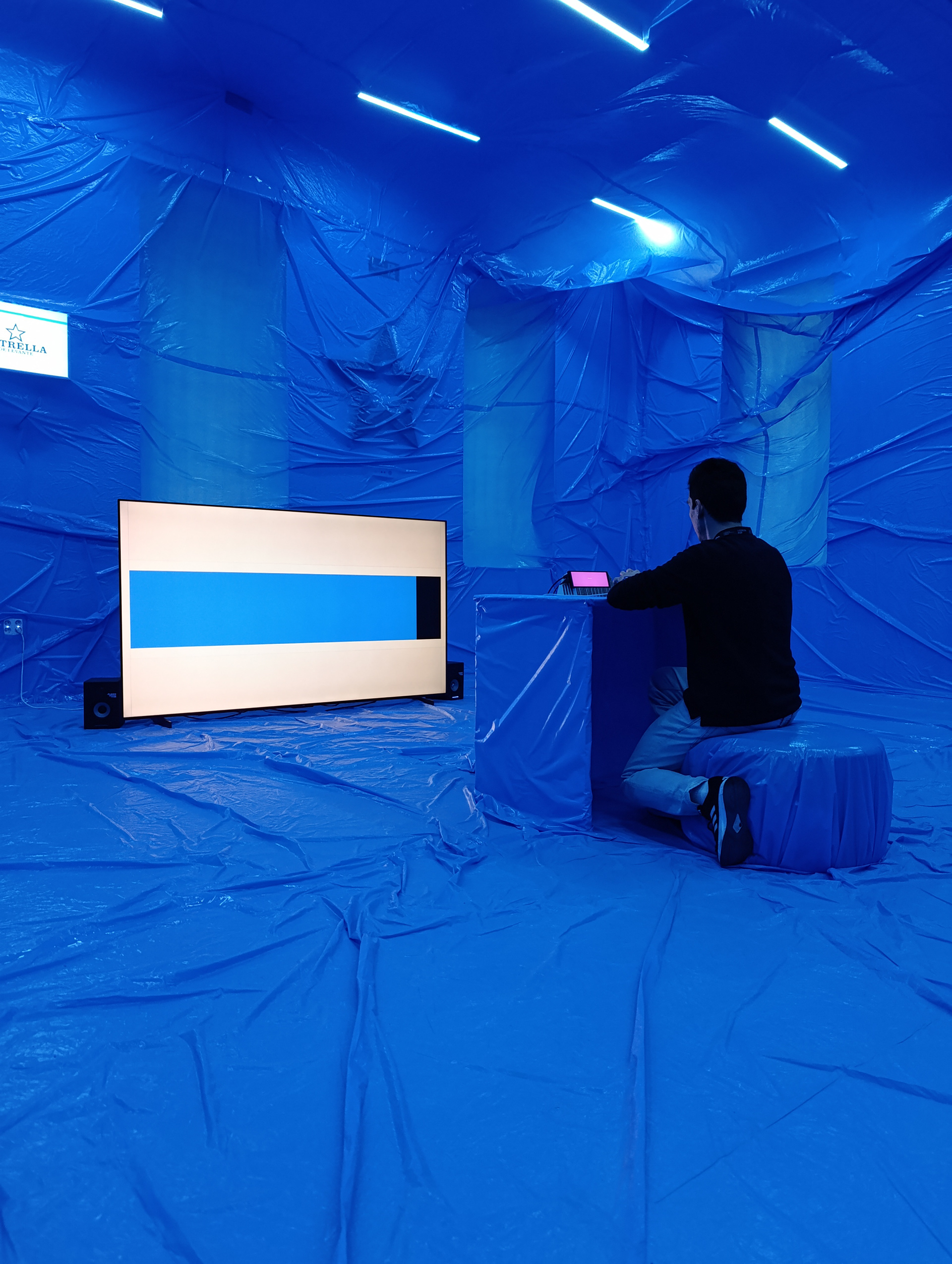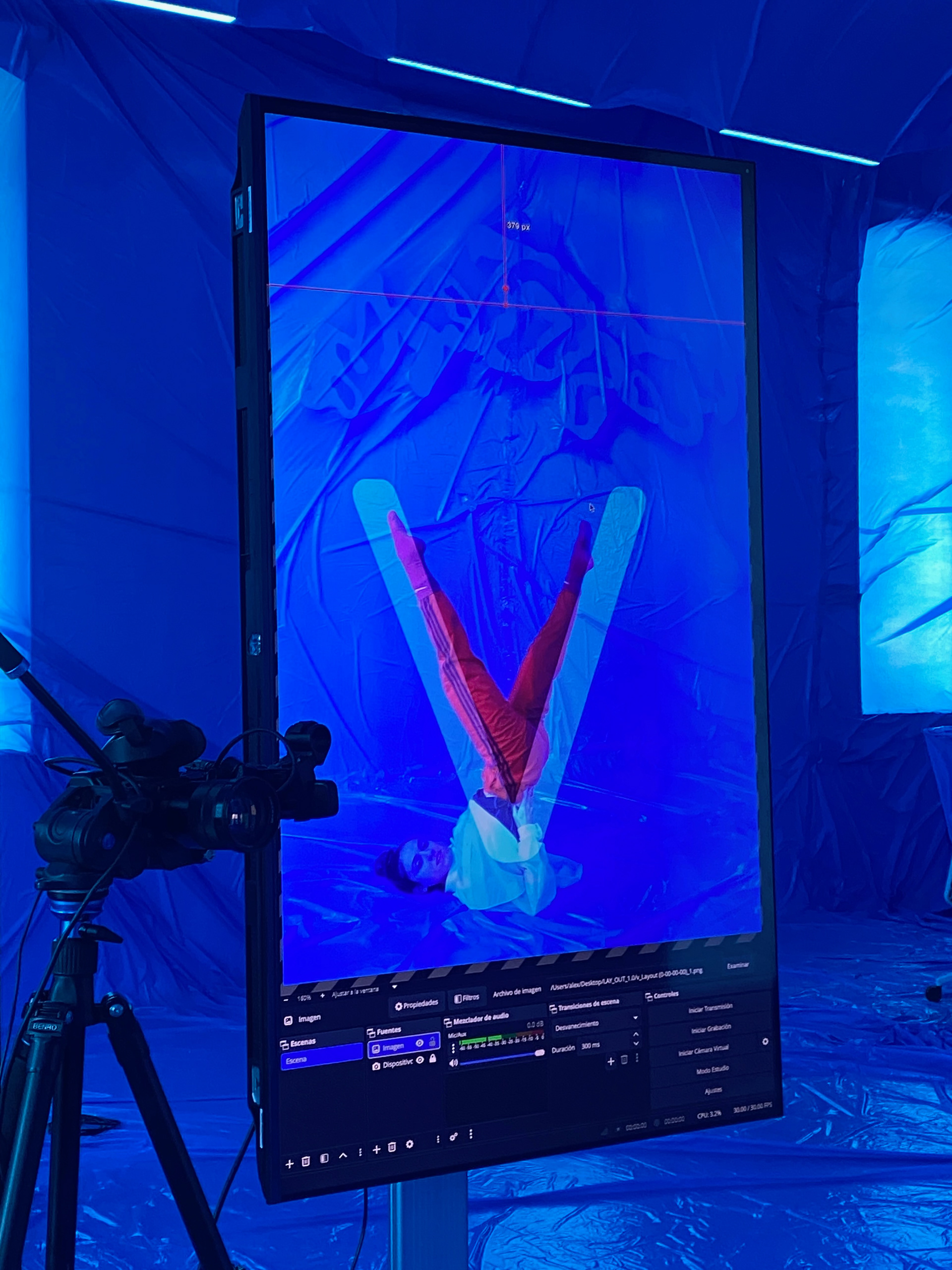 During the presentation in Murcia, letters and words were projected onto the performer’s body, creating a dialogue between the physical body and the typographic body. Following this performative activation, the system can remain open as an interactive installation, allowing the audience to write, improvise, play, or even take photographs as if it were a choreographic photocall. In this way, the system can function both as a contemplative experience and as a playful, participatory space.