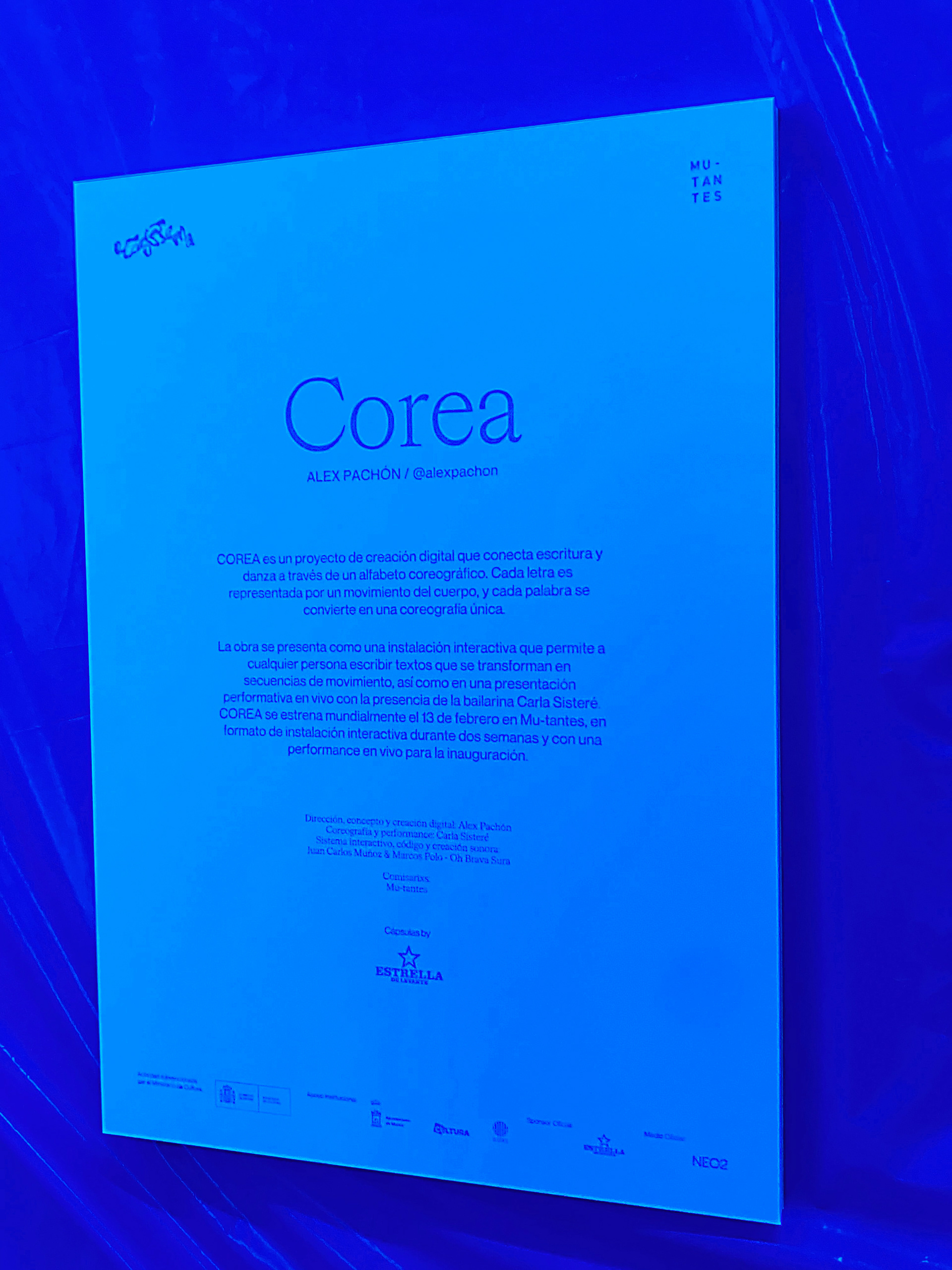 COREA thus unfolds as installation, performance, laboratory, graphic exhibition, and publication: a device that transforms writing into movement and the spectator into a choreographer.